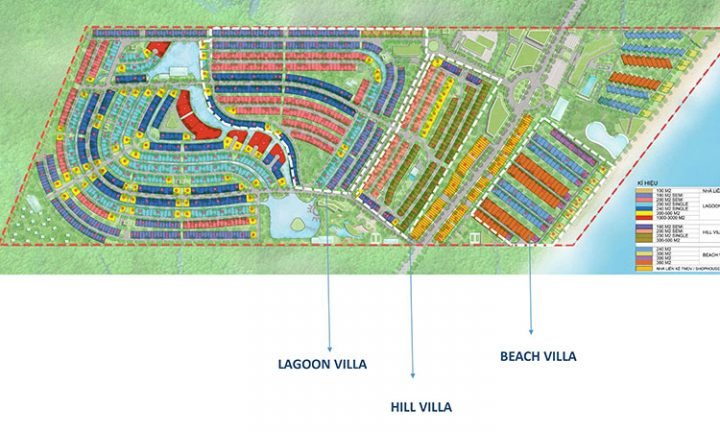 Với quy mô lên đến 100 ha, chia thành 3 khu Villa nhỏ: Beach Villa (hướng biển), Hill Villa (trung tâm), Lagoon Villa (bao quanh hồ Lagoon) và các tiện ích nội khu khác nằm xen kẽ xung quanh tạo nên một khu đô thị nghỉ dưỡng đẳng cấp.