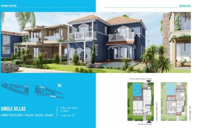 Các dinh thự có diện tích từ 600 – 1000 – 2000m2, Gồm 240 căn dinh thự được xây dựng ở giai đoạn 1 và các căn hộ khác, cụ thể: